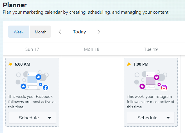 If you go to Meta Business Suite, you can link your brand’s Instagram account and post simultaneously the content you want to publish. Of course, you have to consider if the suggested time of Meta is optimal for your brand. A 6:00 AM scheduled post on Facebook might not have a wide reach for your Instagram followers. As a social media manager, adjust what you think is the best time to publish your content. Know the engagement pattern of your followers per channel.